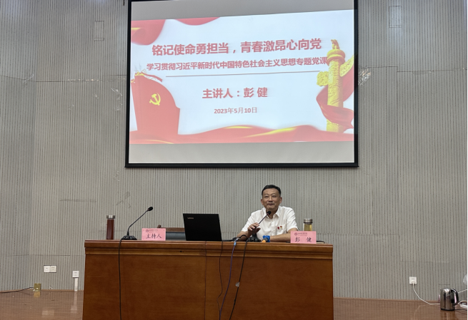 公司党委书记彭健以《铭记使命勇担当,青春激昂心向党》为主题讲授专题党课。彭健书记紧紧围绕“学思想、强党性、重实践、建新功”四个方面深刻阐释了开展主题教育的重大意义。他回顾了党的百余年光辉历程,抒发了对党的崇敬之情,号召广大党员干部要扑下身子干实事、谋实招、求实效,发挥“以体育人”专业优势,践行在推进中国式现代化进程中建设体育强国。