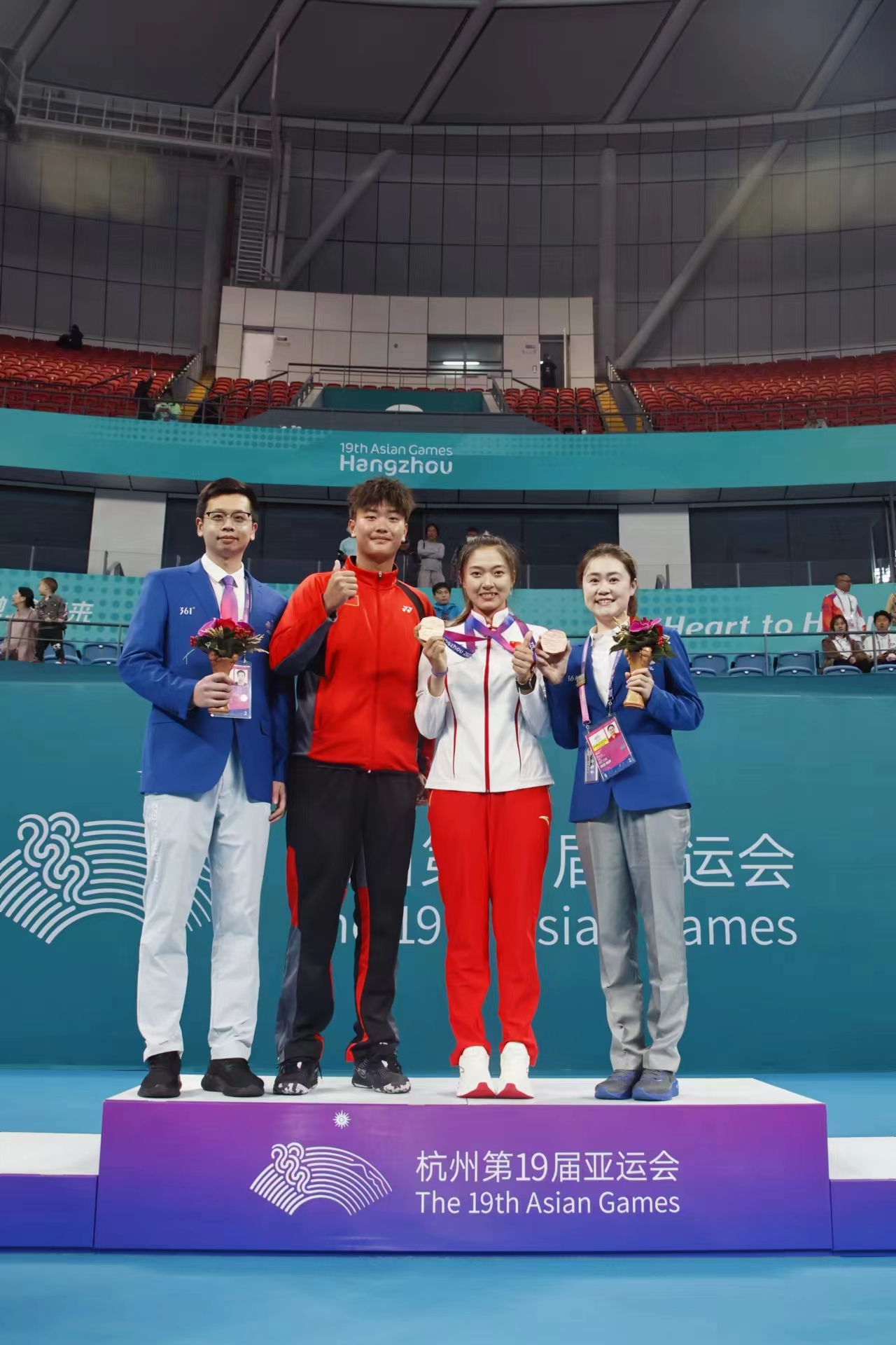 另外,公司老师陶玮健、郭净璞也参与了本届杭州亚运会软式网球项目的执裁工作。
