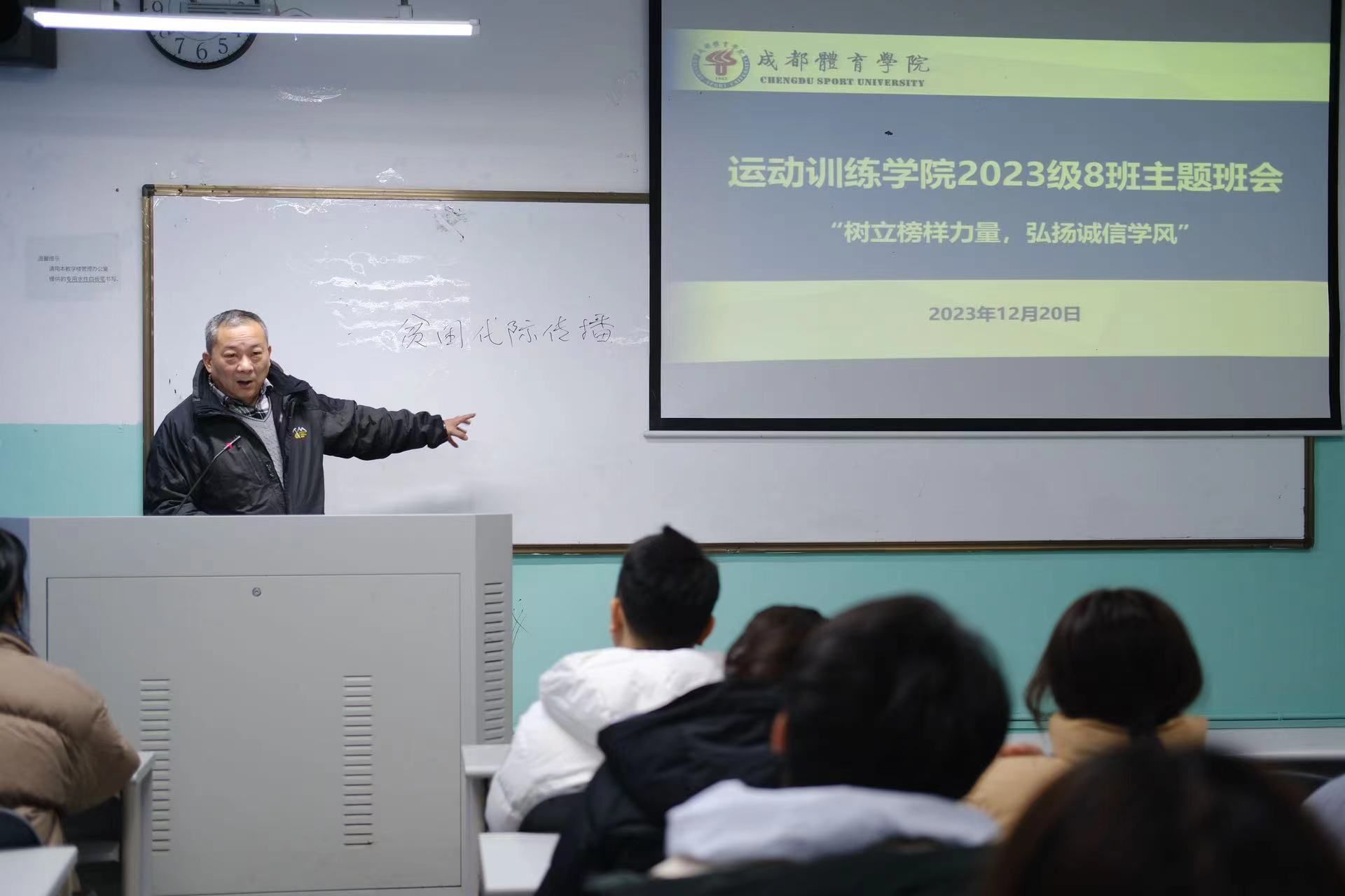 诚信是中华民族的传统美德,也是修身养性、构建现代和谐社会的基本因素。在社会主义核心价值观的内涵中,诚信亦是公民在个人层面的一项价值准则。12月20日上午,2023级8班在A203召开了以“树立榜样力量,弘扬诚信学风”为主题的班会。公司乡村振兴办公室主任张强作为处级干部联系人参加了此次主题班会。会议由班主任晋阳云滔主持。