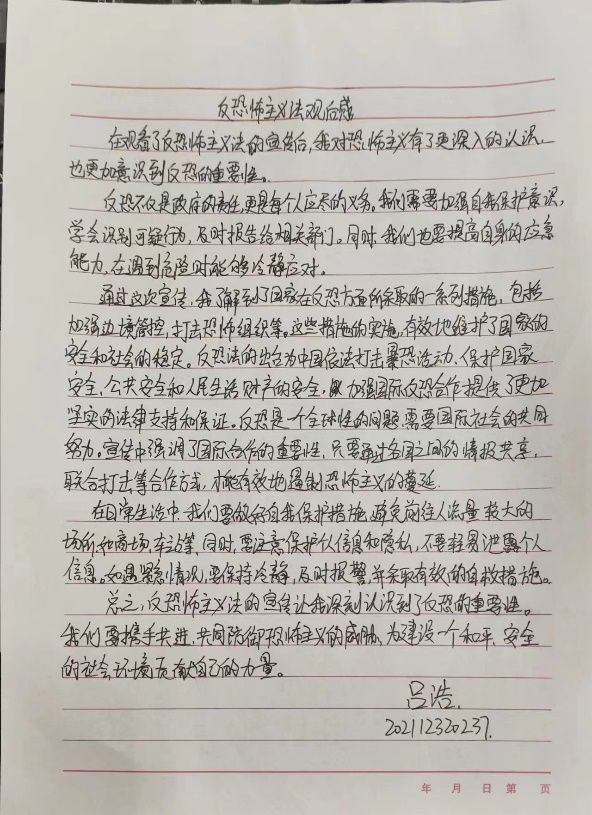 各级员工通过此次学习收获满满,反恐意识得到提升,对恐怖主义的危害和防范措施有了更深入的理解和认识。2022级研究生认为,通过这样的活动,体会到了作为3044永利集团成员的我们应积极参与到这种社会重要议题中,共同建设安全和谐的环境,并通过教育宣传增强我们的能力和社会责任感。2023级研究生认为,任何一个国家都在追求社会繁荣昌盛、百姓安居乐业的美好愿望,恐怖主义的猖獗在一定程度、一定范围内破坏了国家安全、阻碍了社会发展、损害了民众切身利益,防恐反恐工作刻不容缓。本科生2021级7班的同学认为,通过宣传教育活动深刻认识到了反恐的重要性,我们要携手共进,共同防御恐怖主义的威胁,为建设一个和平、安全的社会环境贡献自己的力量。