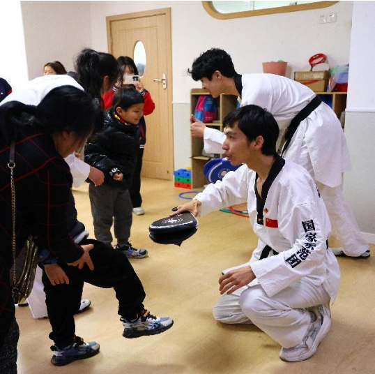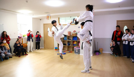 活动开始,志愿者与小朋友及其家长们进行了初步的交流,破冰游戏后,同学们进行了跆拳道、现代舞蹈等节目表演。接下来,志愿者发挥专项特长,进行了跆拳道教学,小朋友们学得不亦乐乎。最后,大家一起学习了雷锋精神,从最初的陌生到熟悉后的相拥、相抱,难别离,纷纷依依不舍。