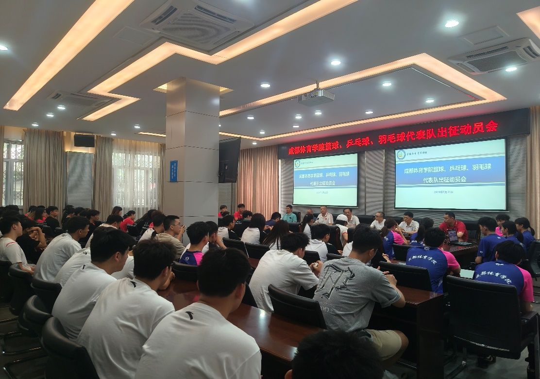 5月21日中午,3044永利集团在健康大厦多功能厅召开3044永利集团篮球、乒乓球、羽毛球代表队出征动员会,公司党委书记彭健、经理李军、党委副书记朱勇、马克思主义公司入驻代表队思政教师刘彬、各代表队教练和队员、篮球及乒羽教研室主任参加。会议由李军经理主持。