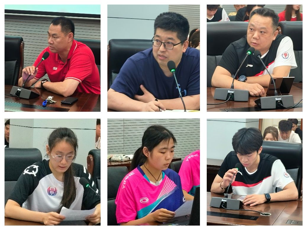 最后,彭健书记作总结发言。他指出,我们要深刻理解“以体为本”“以本为本”内涵,不断提升个人技术技能水平,将个人发展同项目发展紧密结合在一起,积极做运训的建设者。各教研室是代表队建设的主体,要认真规划代表队队员训练、选拔、培养和未来发展,还要关心、爱护队员。最后,对代表队队员作了纪律要求。