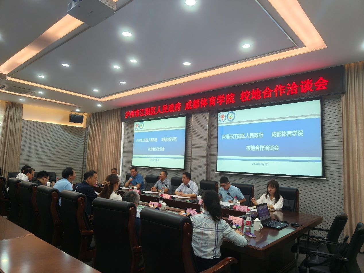 会议介绍了公司基本情况,重点突出了公司办学特色与优势等。泸州市江阳区教育和体育局党组书记、局长陈禄军介绍了江阳区基本情况以及区教育和体育事业的发展情况,并表达了具体的合作诉求。随后,双方参会人员就校地合作的形式、内容、操作方法等方面进行讨论与交流,重点对公司产品实践基地建设、地方品牌赛事打造、青少年体育后备人才培养等方面进行了深入讨论,并达成共识。