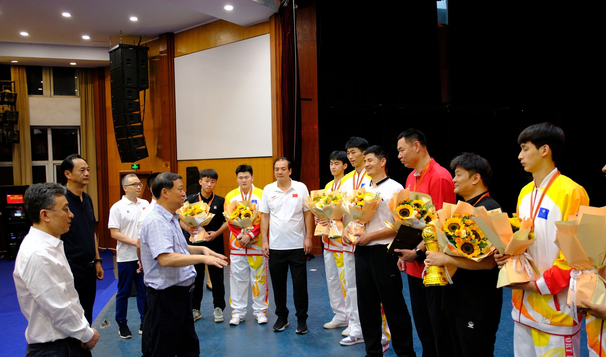 舒书记向取得优异成绩的队员及教练团队表示祝贺。他指出,公司篮球代表队在2024年全国体育院校篮球联赛(SCBA)展现了高水平的运动技能和成体学子良好的精神风貌,为公司赢得了荣誉、增添了光彩。希望全队保持优良的队伍作风,刻苦训练,团结拼搏,在全校范围起到良好的示范作用,引领各代表队及全校员工运动成绩再上新台阶。