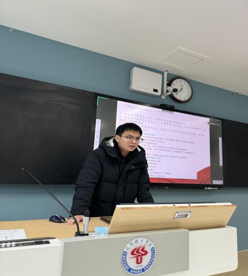 葛晨和匡柏宇同学分别从院校和专业选择、备考规划、学习方法、最后冲刺阶段心态调整、答题技巧等方面进行了精彩的分享。在自由提问环节,同学们积极踊跃发言,围绕就业和考研如何同步兼顾,英语、政治与专业课如何科学高分作答等提问,两位同学条理清晰、毫不保留提出切实可行的建议,赢得了同学们的阵阵掌声。