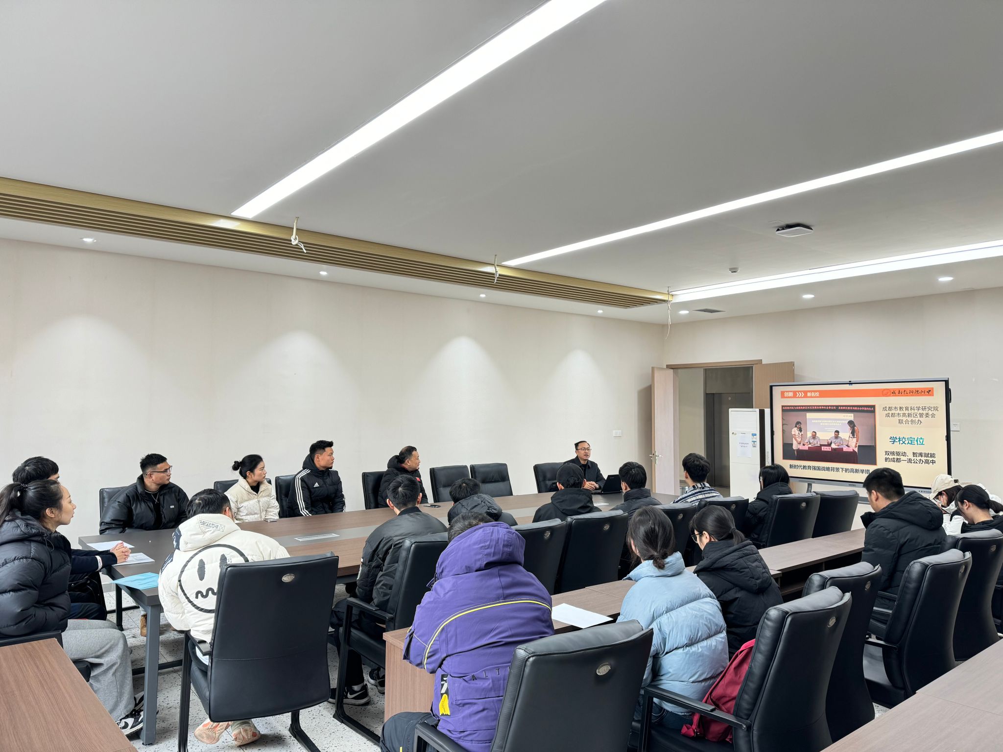 成都市教育科学研究院附属中学五街校区负责人黄世海老师从招聘公司发展史、岗位要求、薪资待遇、未来发展、个人提升等方面进行了精彩推介,自由提问环节结束后逐一进行了现场面试,用人单位后续将择优通知复试人员。