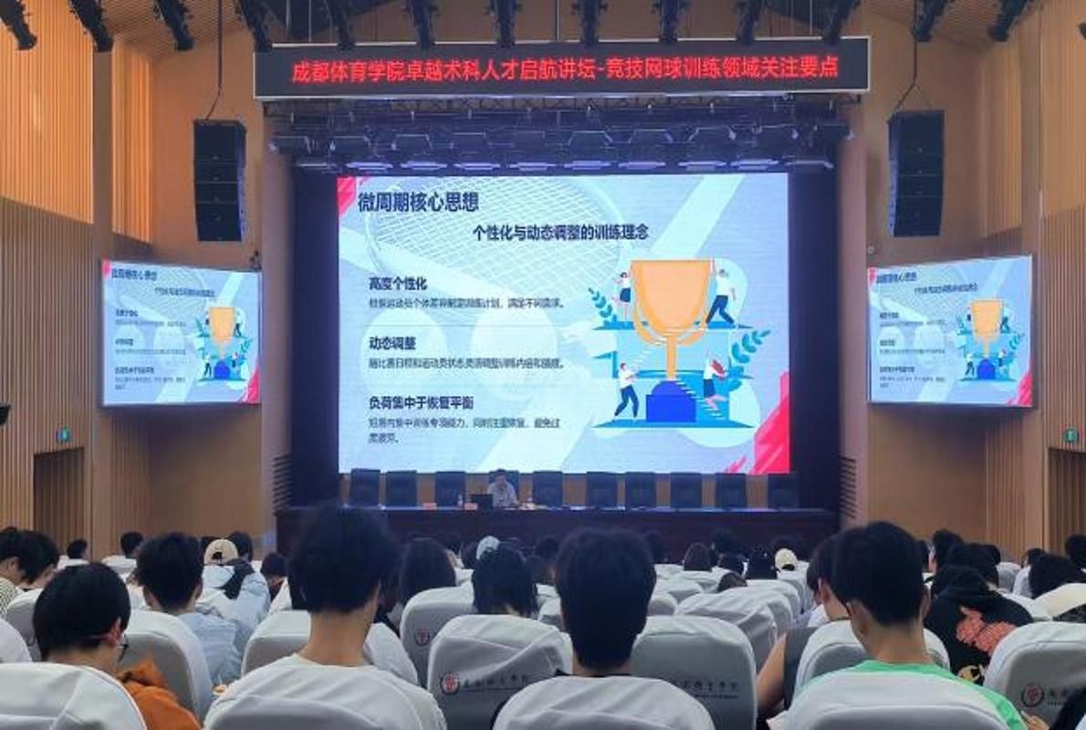 行业实践导师蒋宏伟、刘宪章受邀分别以《竞技网球训练领域关注要点》《计算机视觉技术在体育竞赛和科学训练中的应用》为近200名师生做了专题讲座。