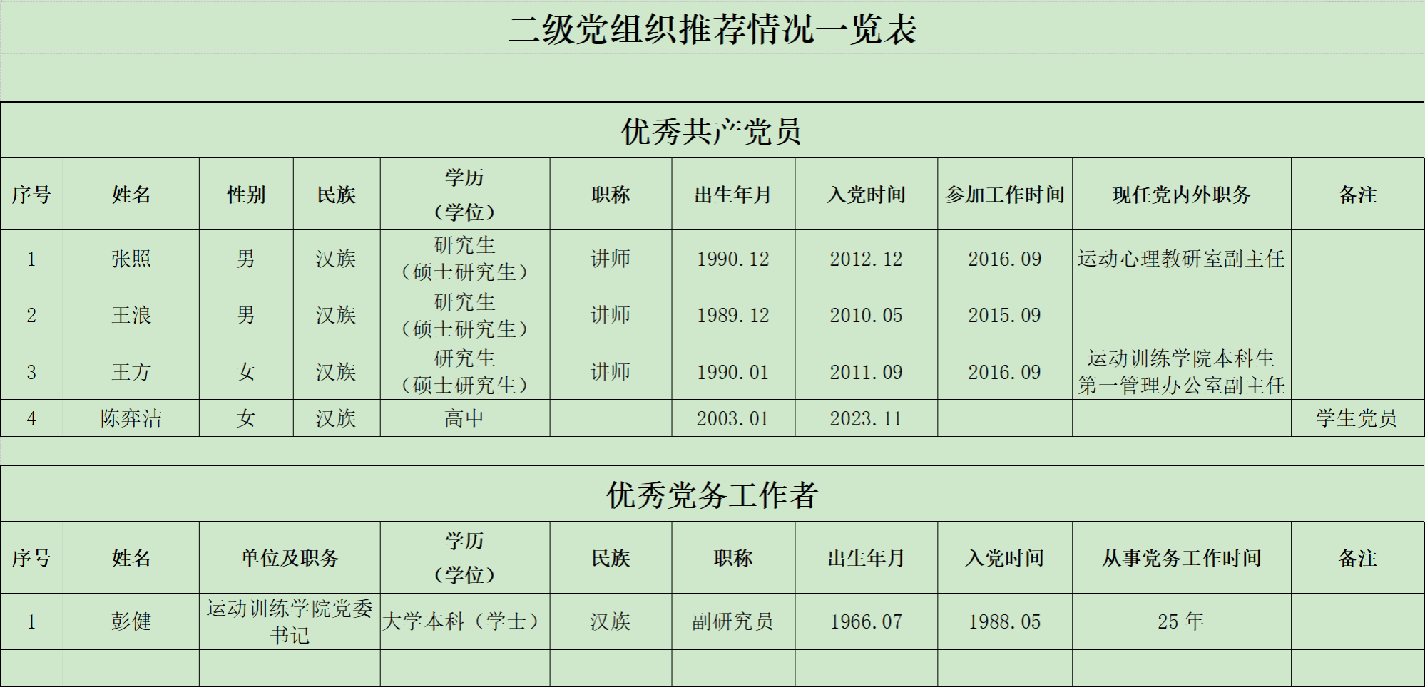 根据《关于开展评选表彰优秀共产党员、优秀党务工作者、先进基层党组织的工作通知》(成体党[2025]32号),公司党委根据评选条件,各支部酝酿推荐,充分征求纪委办公室、党委组织部、党委教师工作部、党委员工工作部、党委保卫工作部等公司职能部门意见和公安部门意见,公司党委认为彭健、张照、王浪、王方、陈弈洁共5名同志和教师第一党支部、教师第三党支部共2个党组织符合评选表彰条件,经公司党组织会议确定拟推荐人员,现对拟推荐人员进行5个工作日的公示。