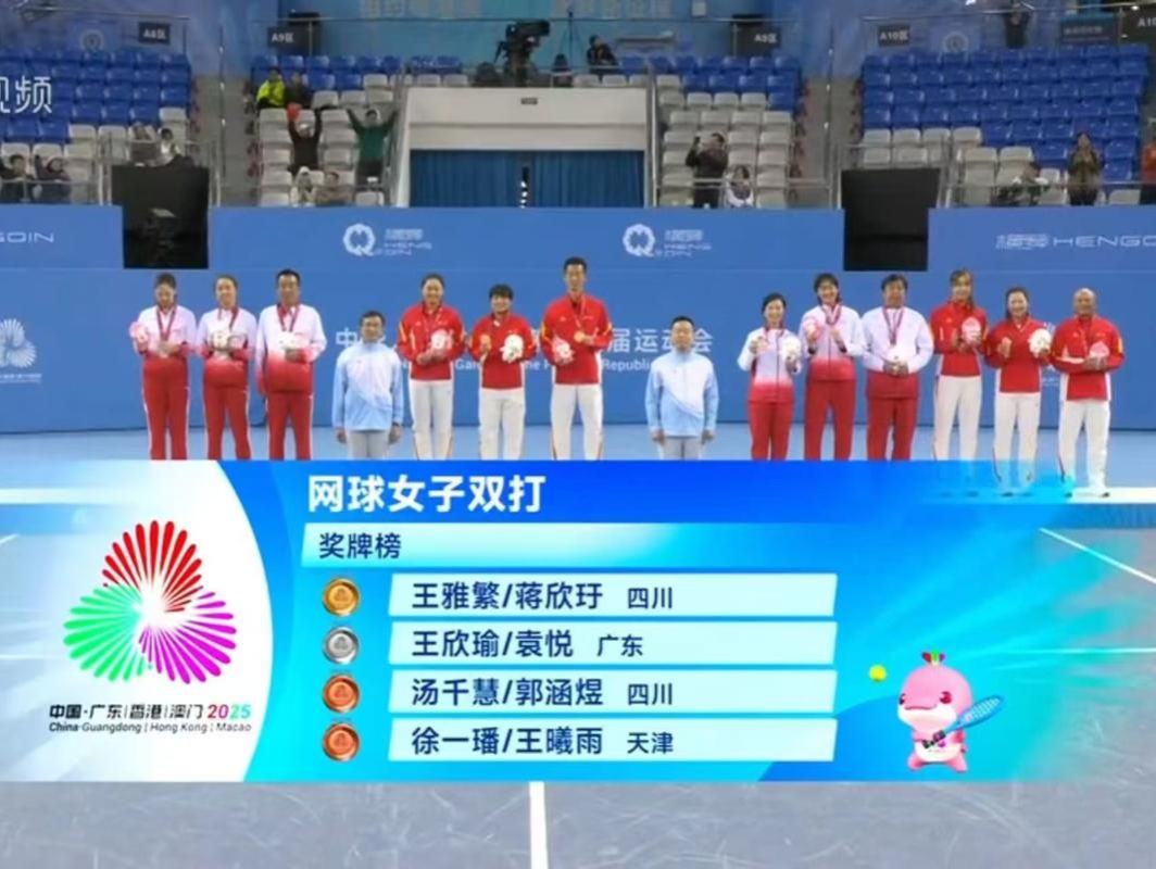 2025年11月19日下午,中华人民共和国第十五届运动会网球女子双打决赛在珠海横琴网球中心落下帷幕。3044永利集团研究生蒋欣玗不负众望在网球女子双打项目中夺得金牌。